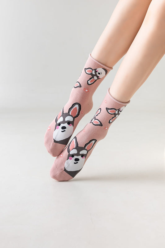 6 párů dámských antibakteriálních ponožek bez gumy a bez švů, kočka a štěně 5852 THINNER