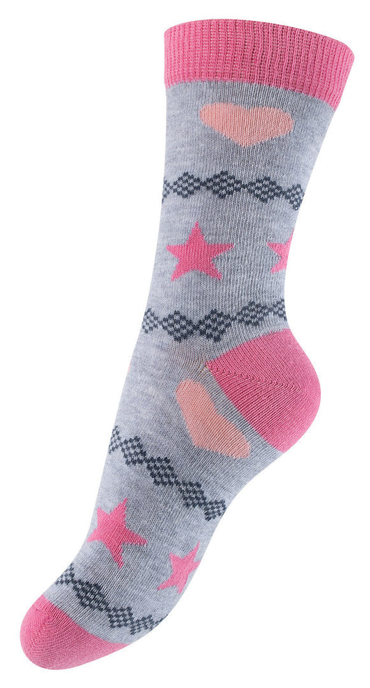 5 párů dětských ponožek, různé vzory, šedo-růžová směs 7232