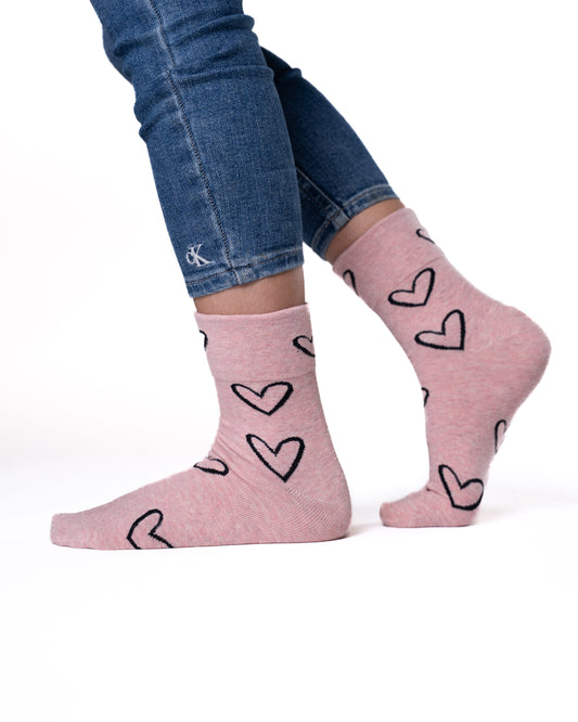 6 párů dámských ponožek bez gumičky, velká srdíčka 5929