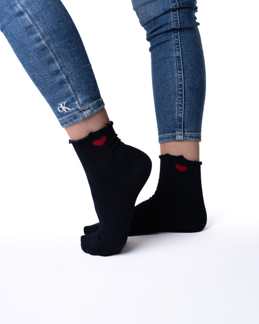 6 párů dámských ponožek bez gumičky, středně vysoké, červená srdíčka 5964