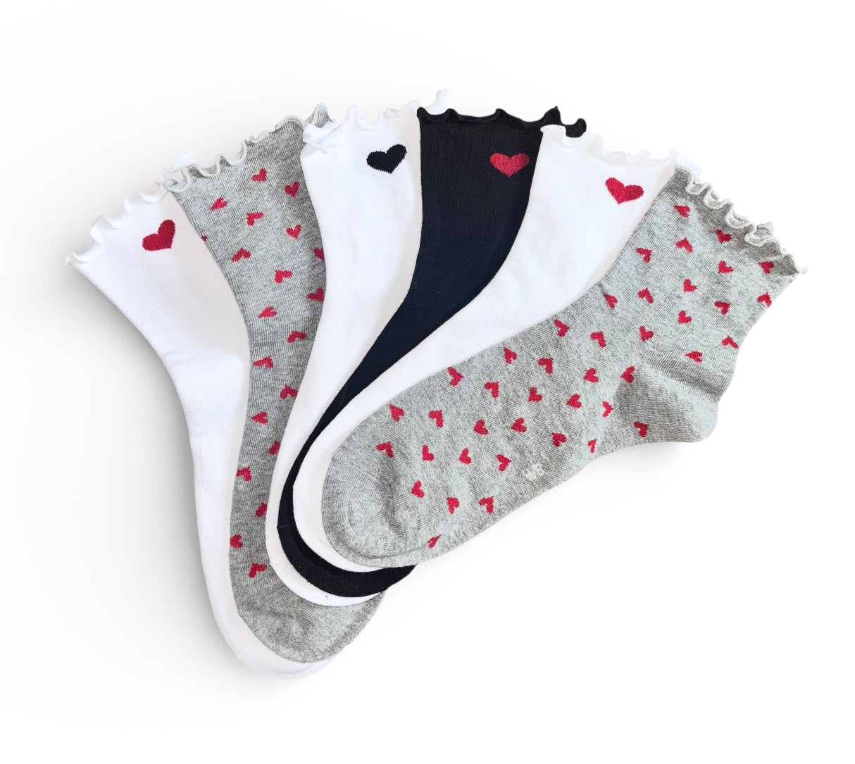 ✓ 6 párů dámských polovysokých ponožek bez gumičky se srdíčky