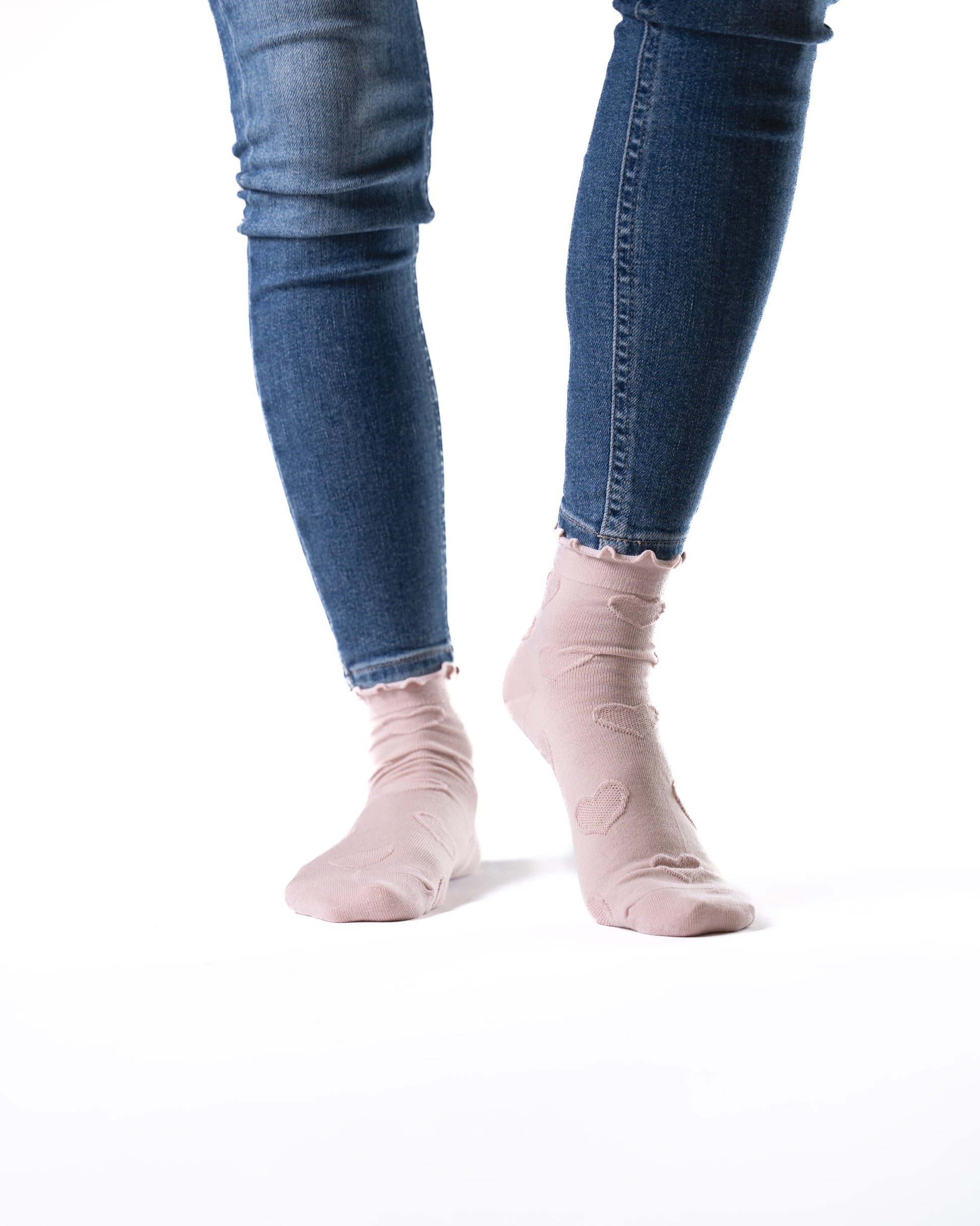 6 párů dámských polovysokých ponožek bez gumičky, reliéfní srdíčko 5947