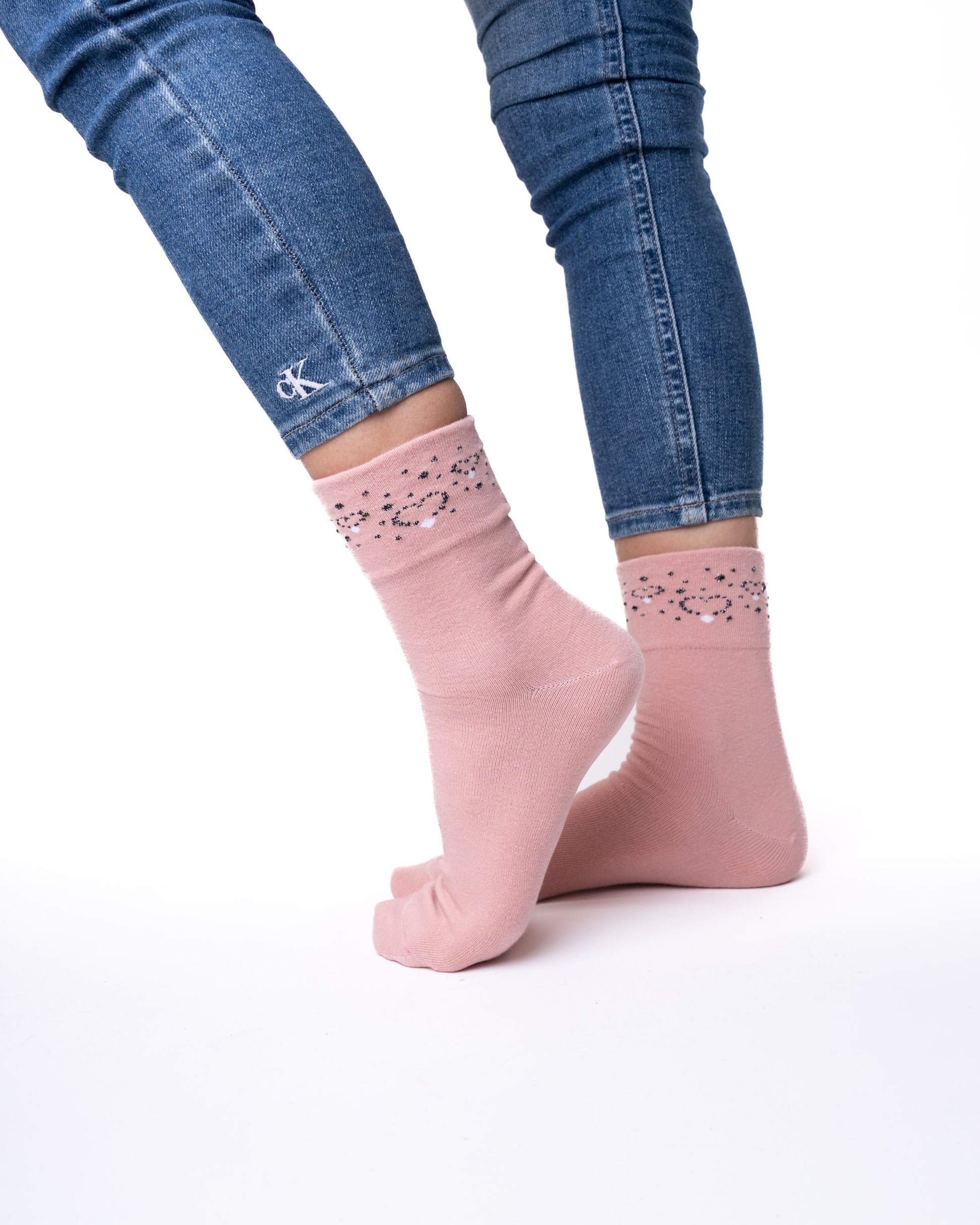 ✔ 6 párů dámských ponožek v různých barvách s mini lurexovými srdíčky na okraji