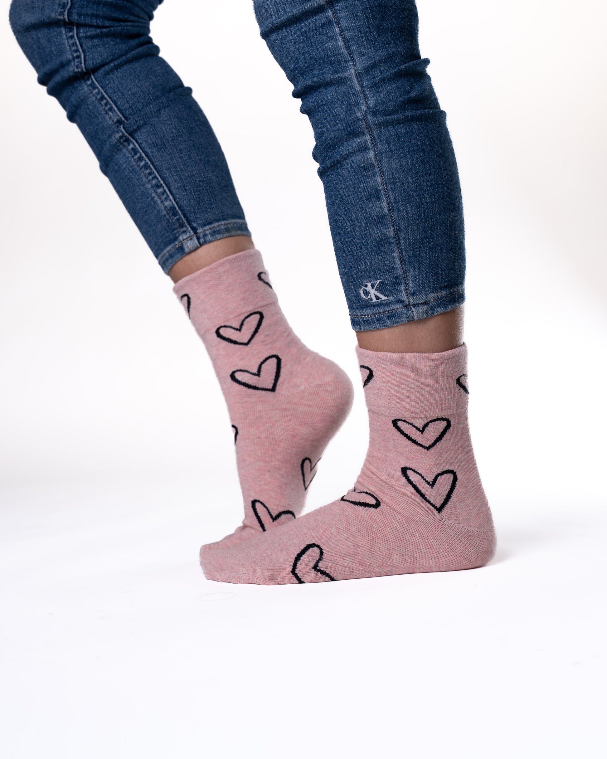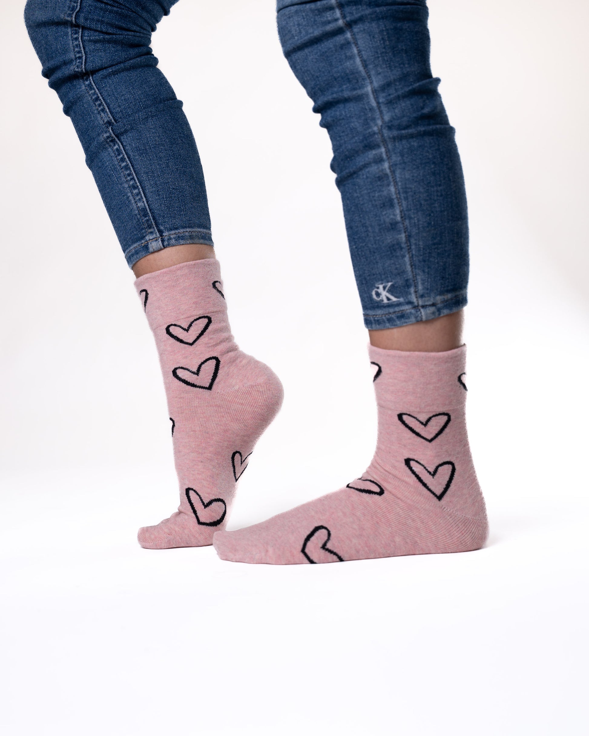 6 párů dámských ponožek bez gumičky, velká srdíčka 5929