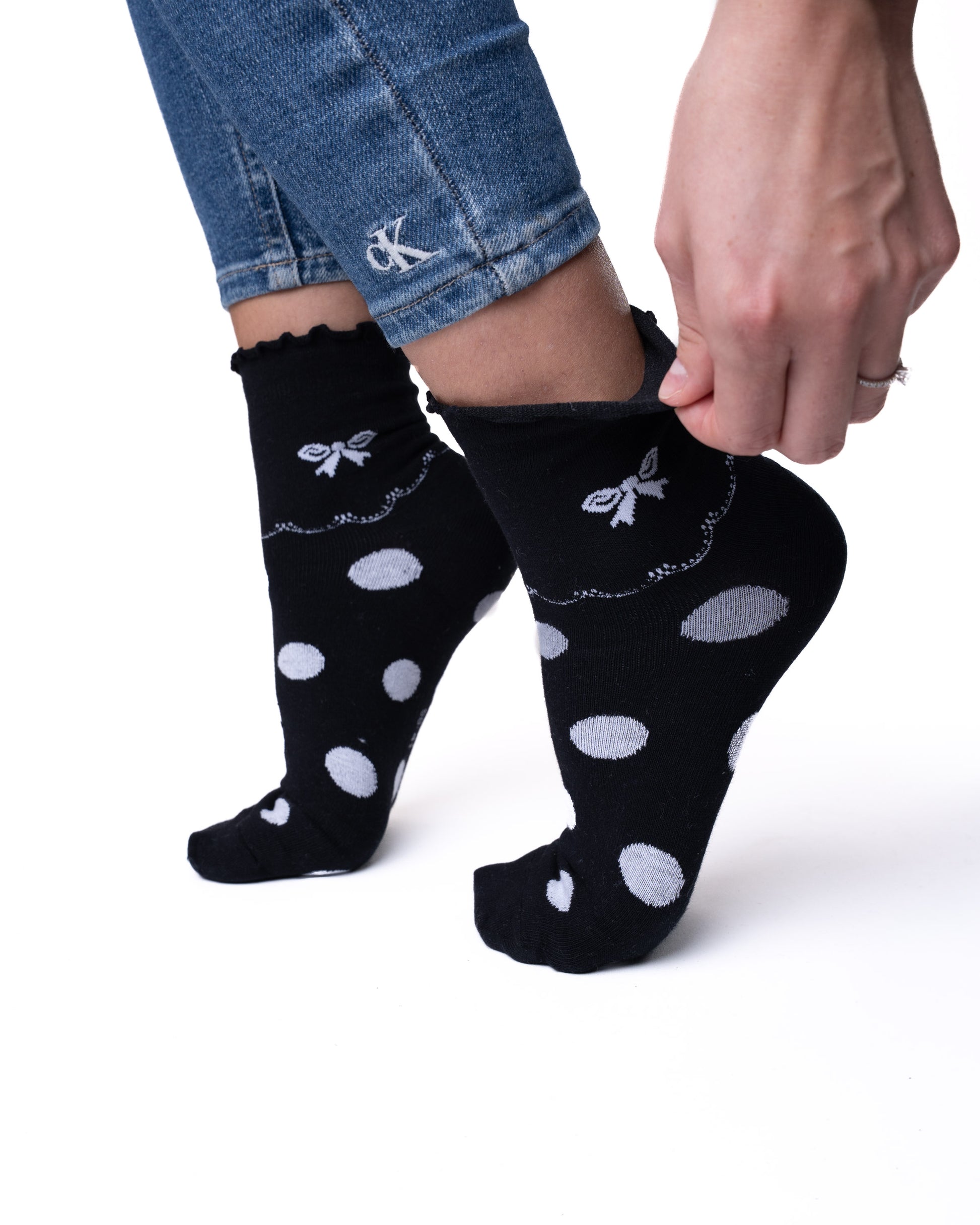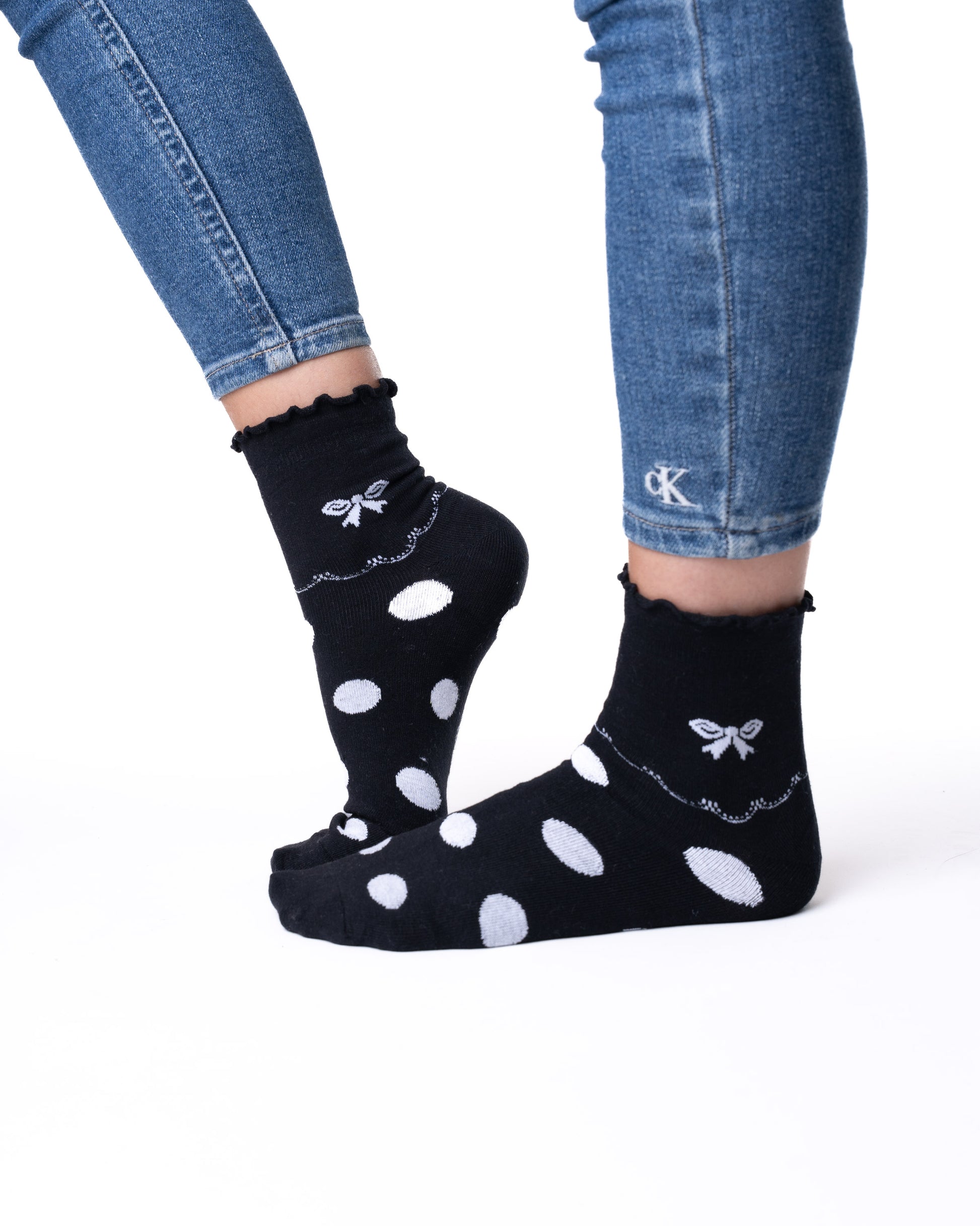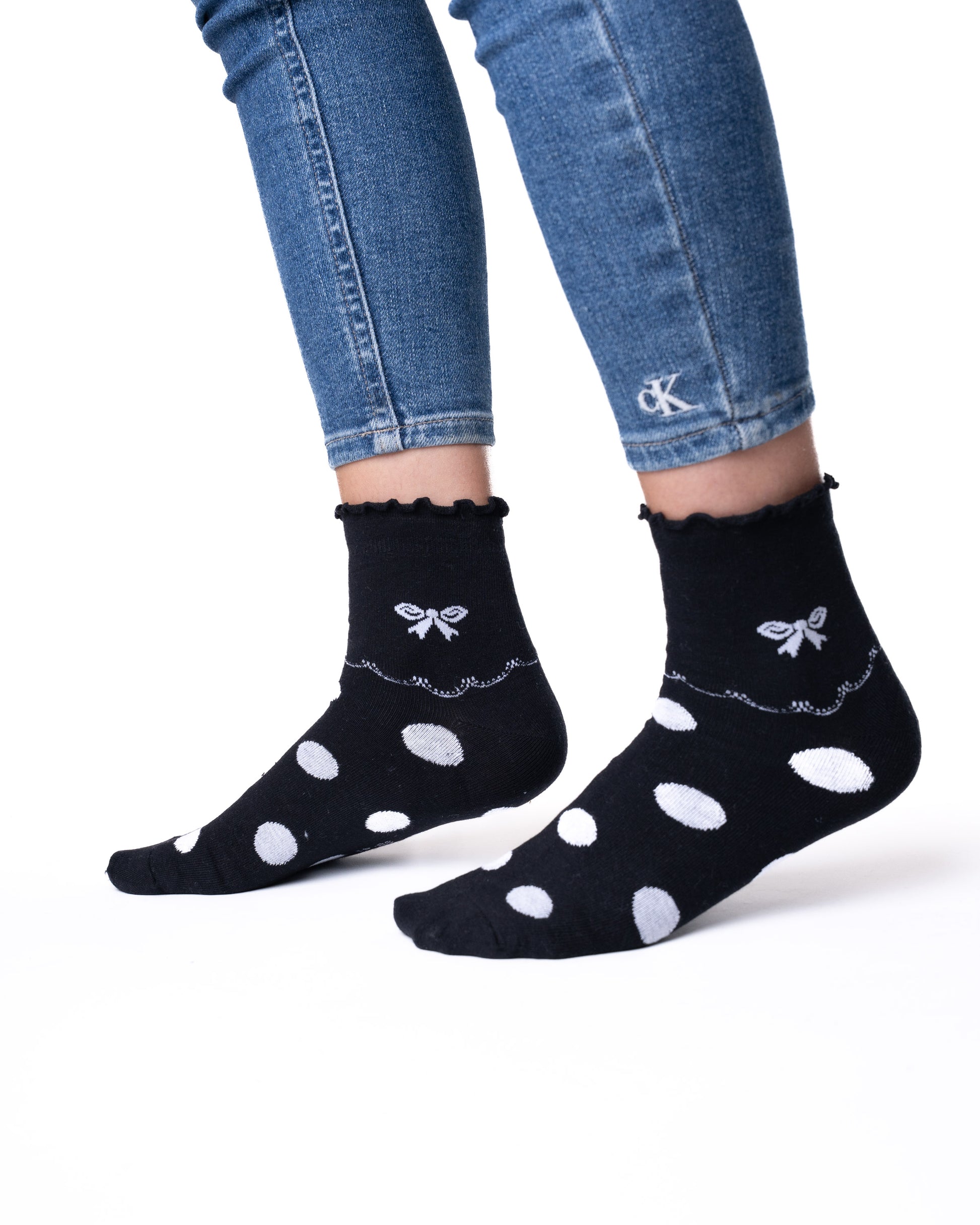 ✓ 6 párů dámských polovysokých ponožek bez gumičky s puntíky a mašličkami