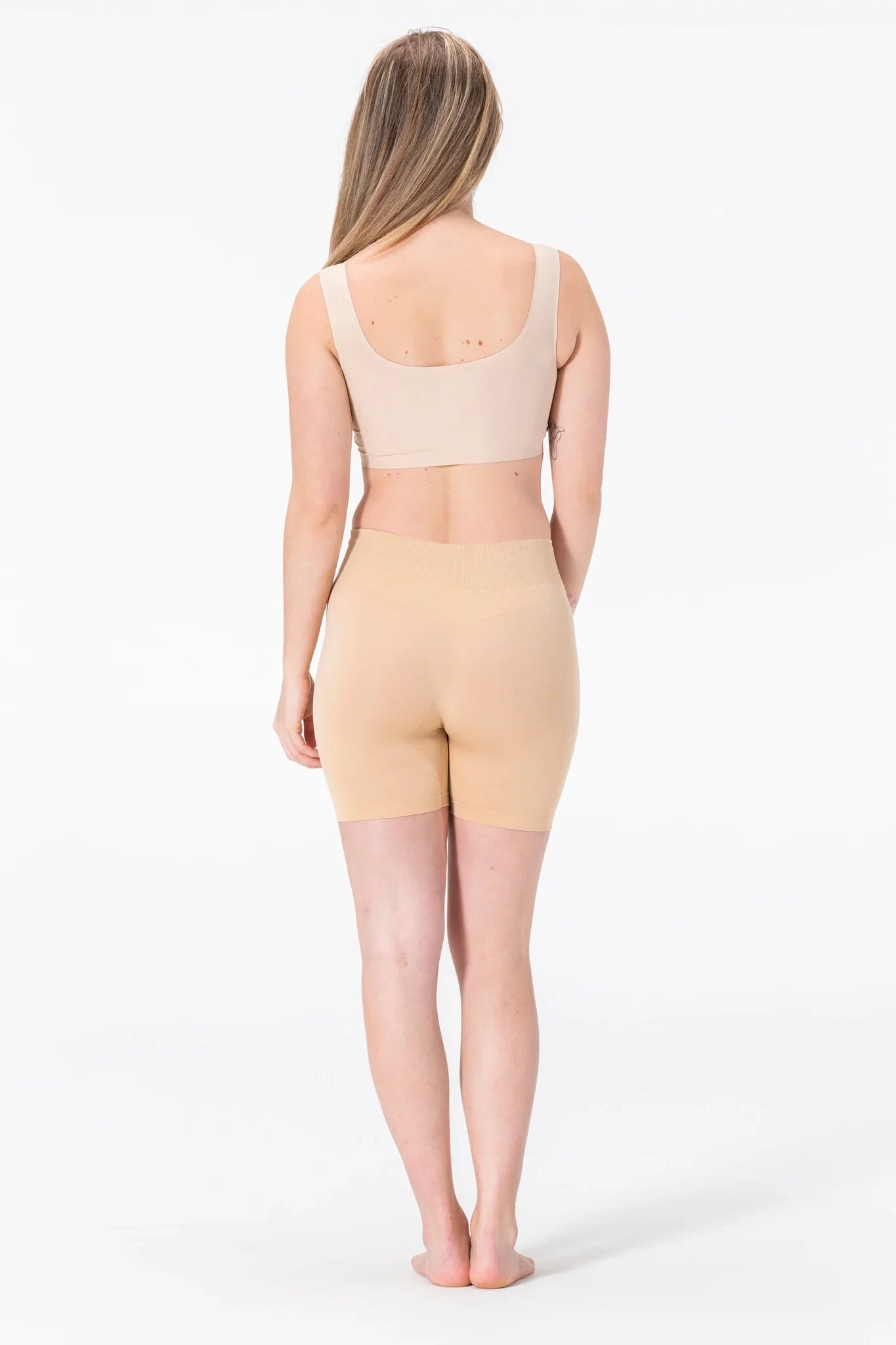 ✓ ženske brezšivne kolesarske kratke hlače v kožni barvi